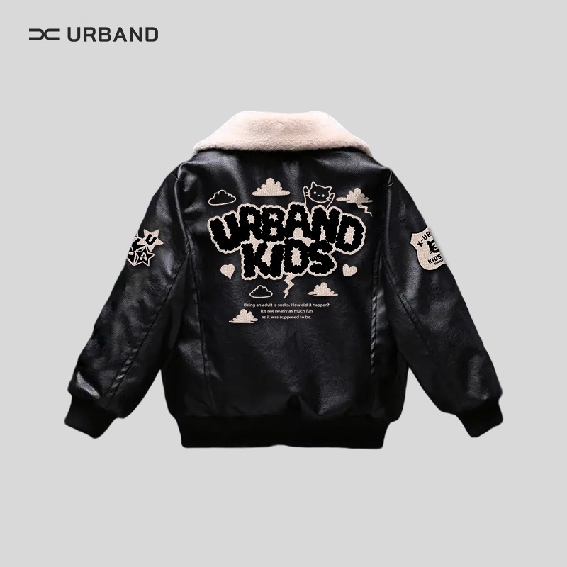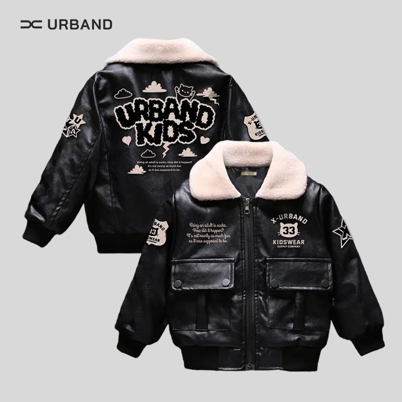 X Urband Absolute Jaket Anak Laki Laki - Perempuan Kulit Sintetis Kerah Sherpa