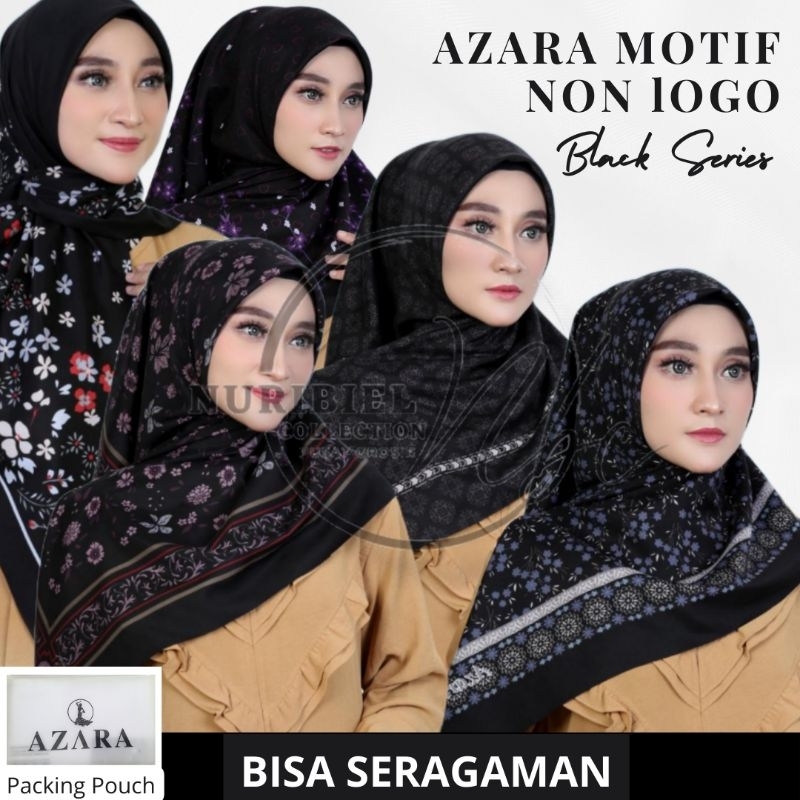 Hijab Segiempat Seri Hitam Azara Pouch Non Logo Motif Simple