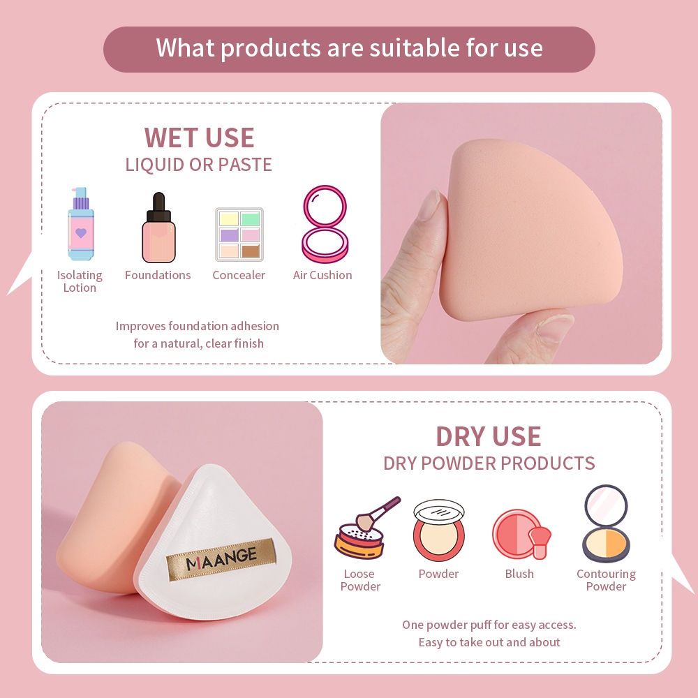 MAANGE Makeup Concealer Foundation Puff Soft Air Cushion lembut Cosmetic Puff Segitiga Spons Sponge Bedak Basah Dan Keri