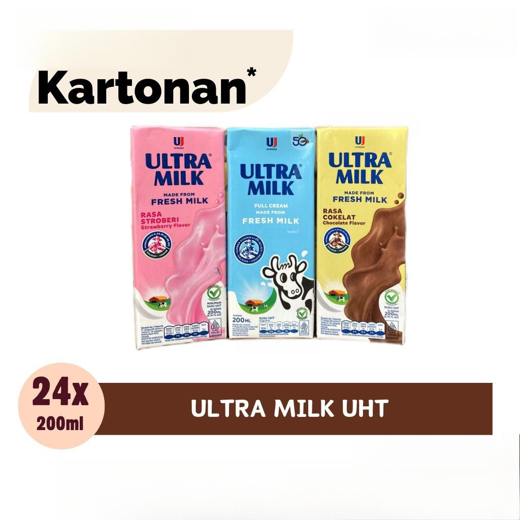 Susu Uht Ultra Milk Full Cream 200ml 1 Karton Isi 24 Pcs kualitas premium untuk kebutuhan harian