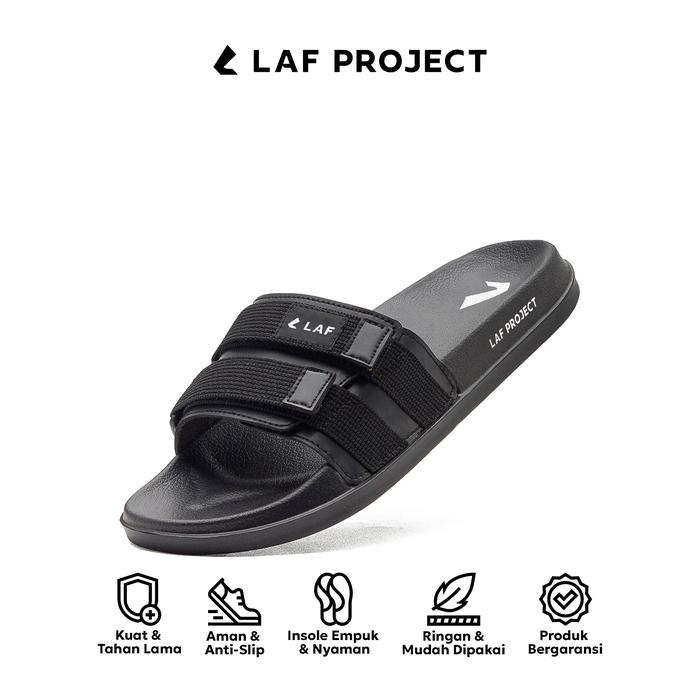 SANDAL PRIA SLIDE SENDAL SLIP ON ANTI LICIN RINGAN GORKA HITAM LAF PROJECT - 39