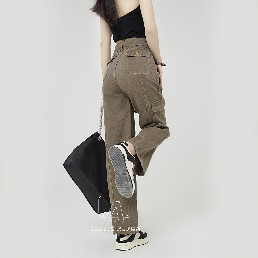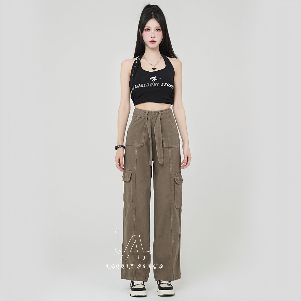 FLASH SALE Lassie alpha J41 ready stok celana cargo jeans wanita HW Celana panjang boyfriend jeans kulot celana kargo wanita high