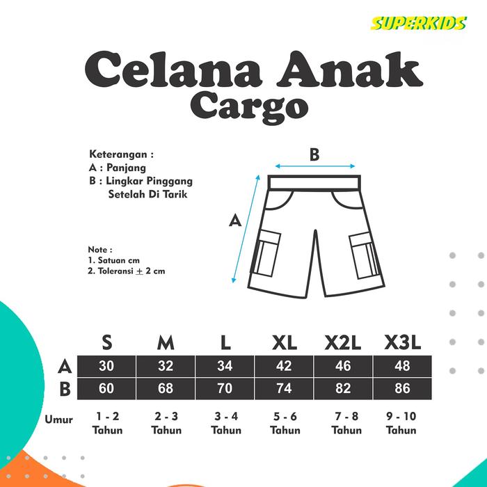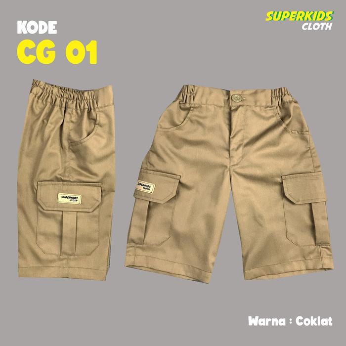 CELANA ANAK LAKI-LAKI CARGO PENDEK WARNA COKLAT SUPERKIDS CLOTH 1 - 11 TAHUN COTTON DISTRO - COKELAT, S