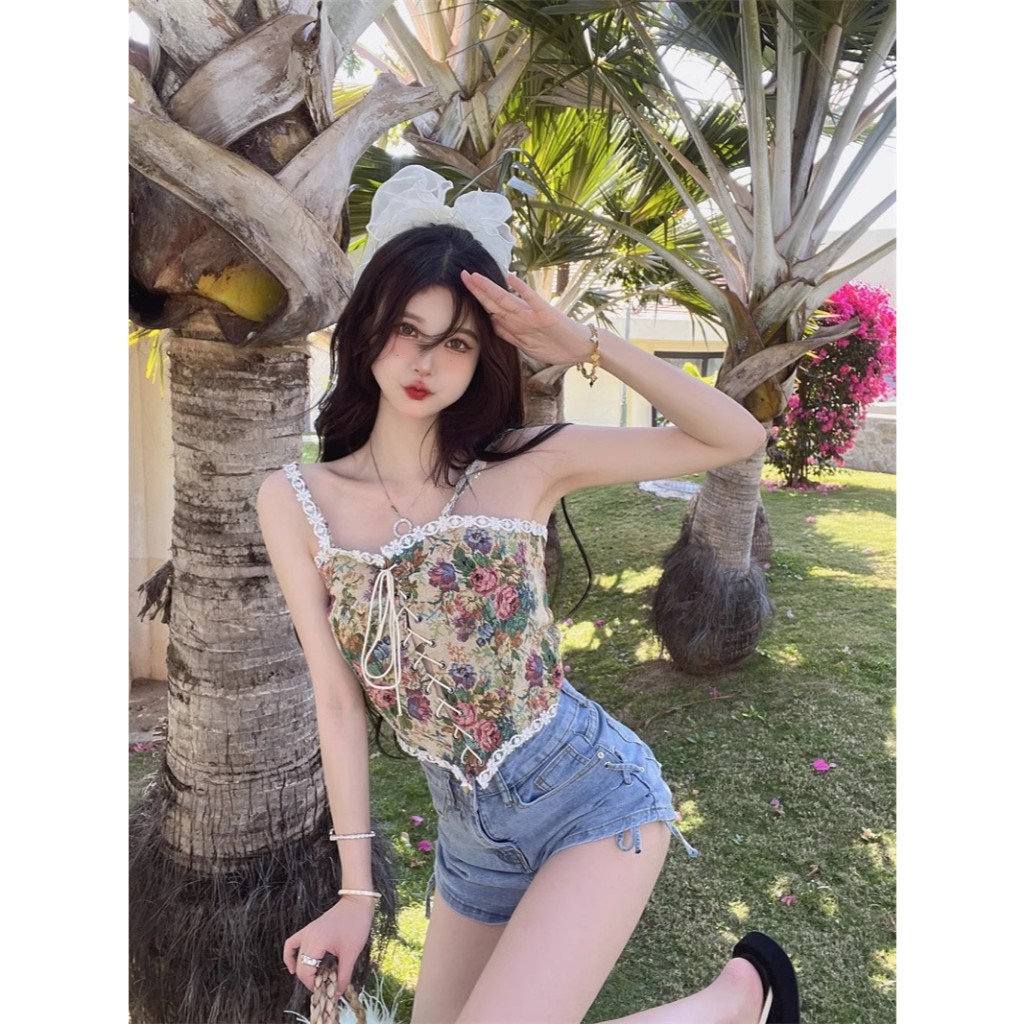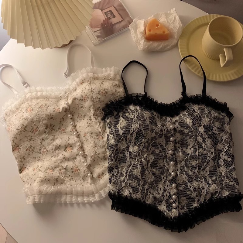 FLASH SALE The Monseur Gallery Tank Top Crop Retro Korean Style Tangtop Lace Floral