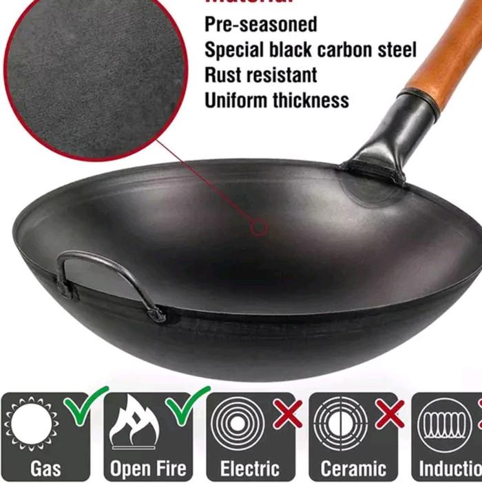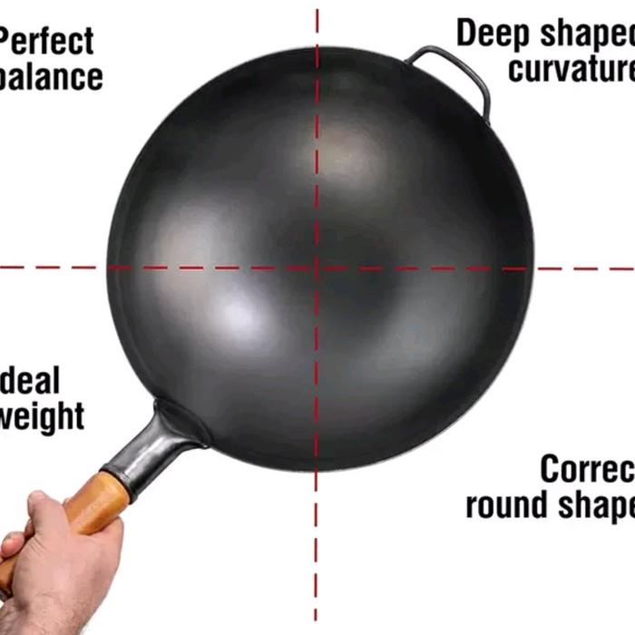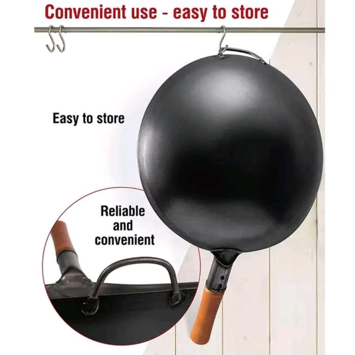 wajan anti lengket black carbon Kitchenware Peralatan Wok wajan nasigoreng wajan besi asli - 32 CM