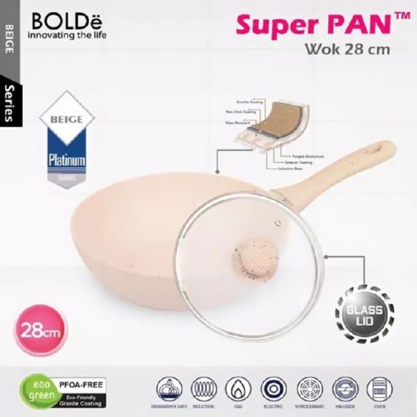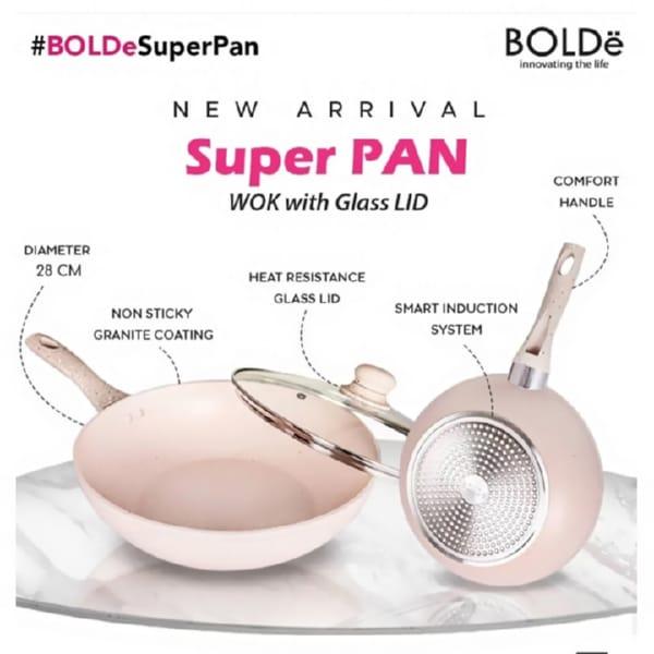 BOLDe SUPER PAN WOK PAN BEIGE 28cm Tutup Kaca Wajan Goreng