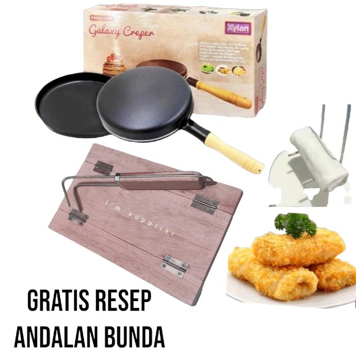wajan teplon kulit risol dan papan lipat garpu pencelup besi set kayu kitchenware