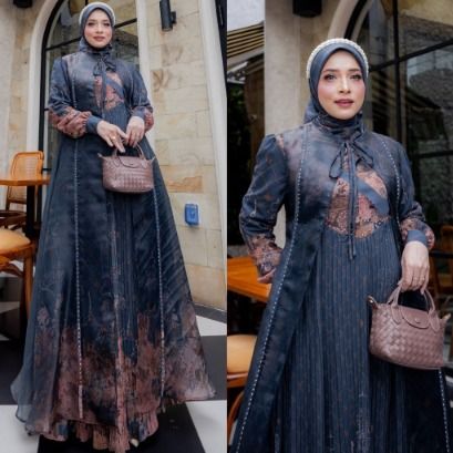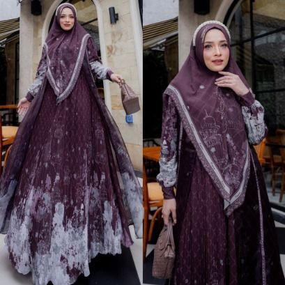 NEESYA SERIES BY D'MECCA SYARI GAMIS CERUTY PREMIUM PRINTING PLISKET SET JILBAB KHIMAR SCARF VOAL ULTRAFINE HIJAB SEGI