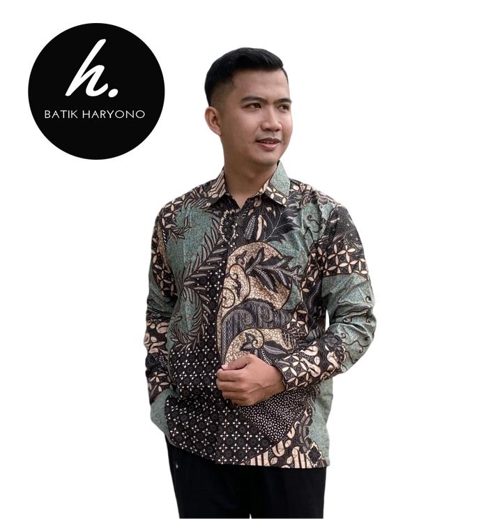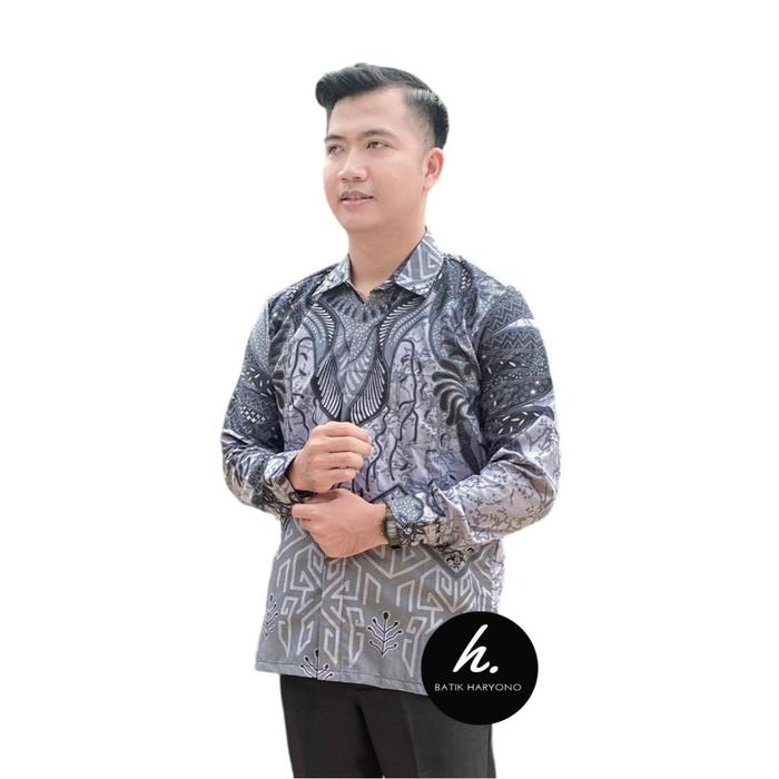 Baju Kemeja Batik Pria Dewasa Murah Lengan Panjang Mewah Terbaru Buat Kondangan Modern kantor motif printing - Abu M