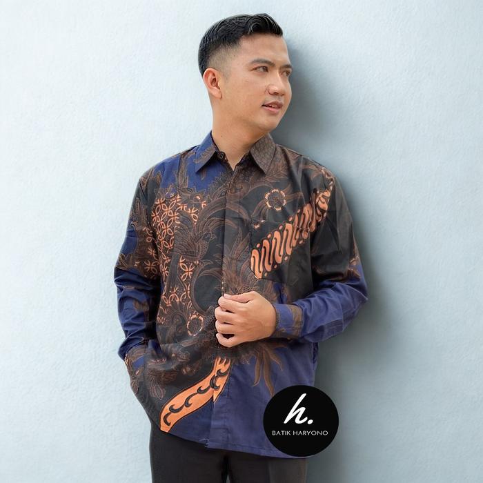 Baju Batik Pria Murah Kemeja Lengan Panjang Dewasa Seragam Kondangan Kerja Terbaru Modern Mewah kantor - Navy Blue M