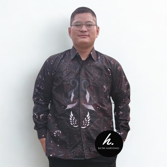 BATIK HARYONO Kemeja Pria Dewasa Lengan Panjang Jumbo Kantor Seragam Hajatan Big Size 3L 4L 5L 6L - Brown M