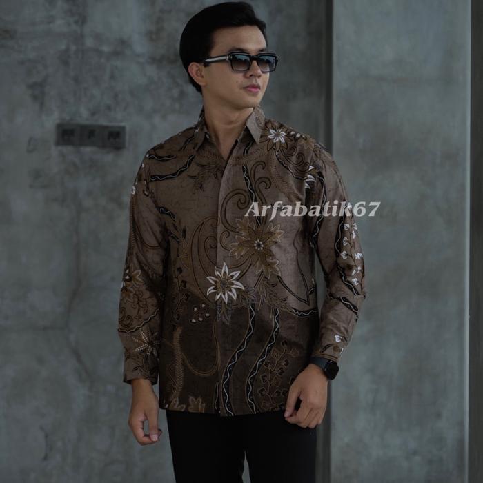 Brown Taupe Kemeja batik pria lengan panjang dan pendek lapis furing by arfabatik67 Formal Katun - Lengan panjang S