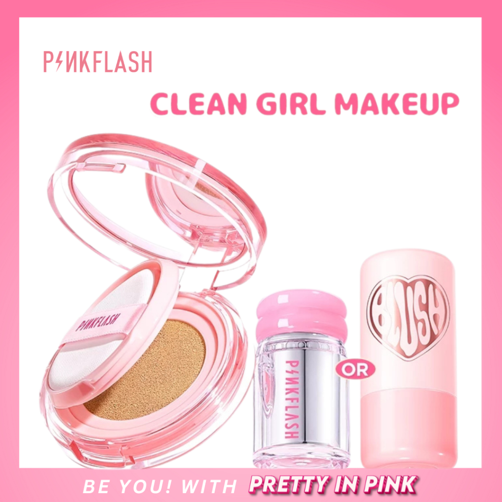 BUNDLE PINKFLASH Clean Girl 2 PCS Makeup Set Skin-Like Multi-Effect Cushion Lasting 12h Transferproof Waterproof Multi-U