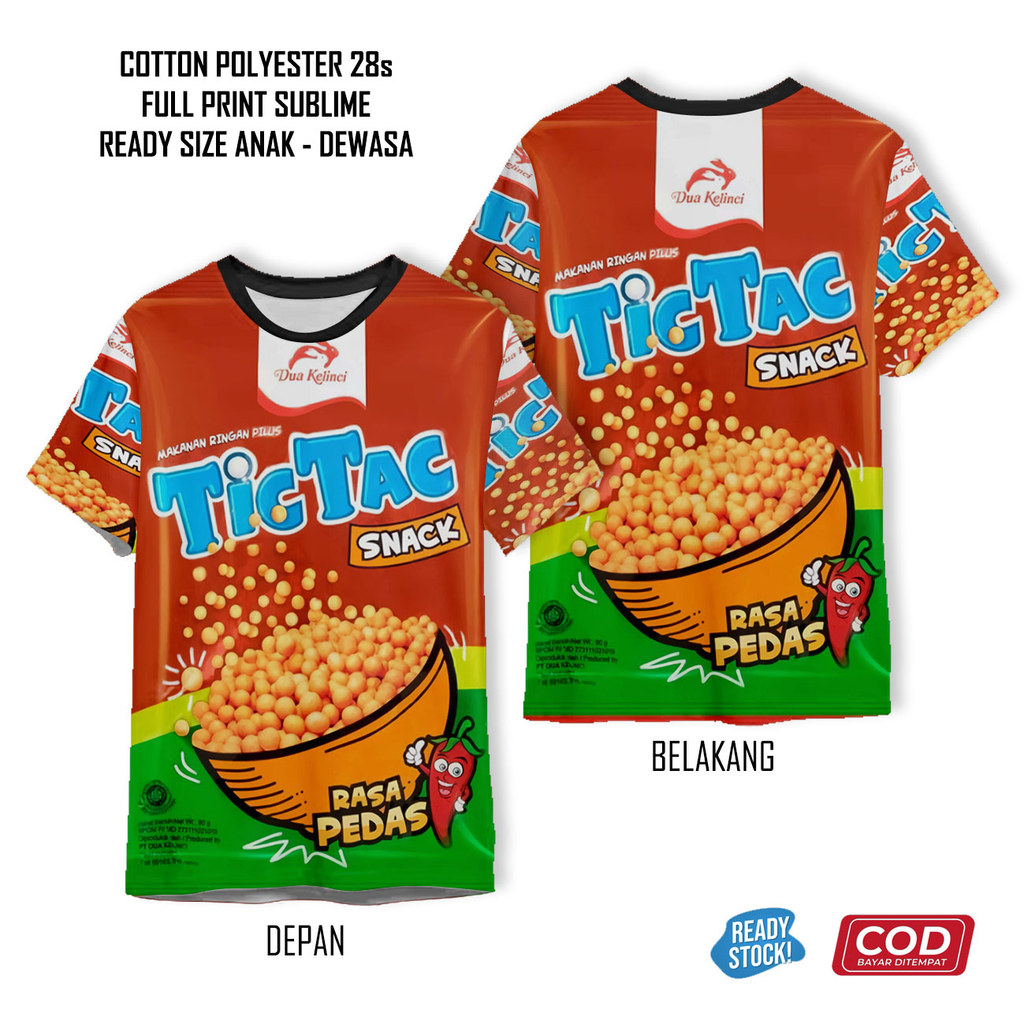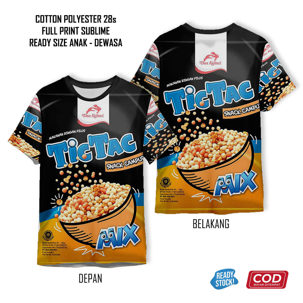 Kaos Tictac Mix Mie Goreng Sapi Rumput Laut Pedas Ayam Snack Jajanan Full Printing Keren | Baju Cemilan Anak dan Dewasa