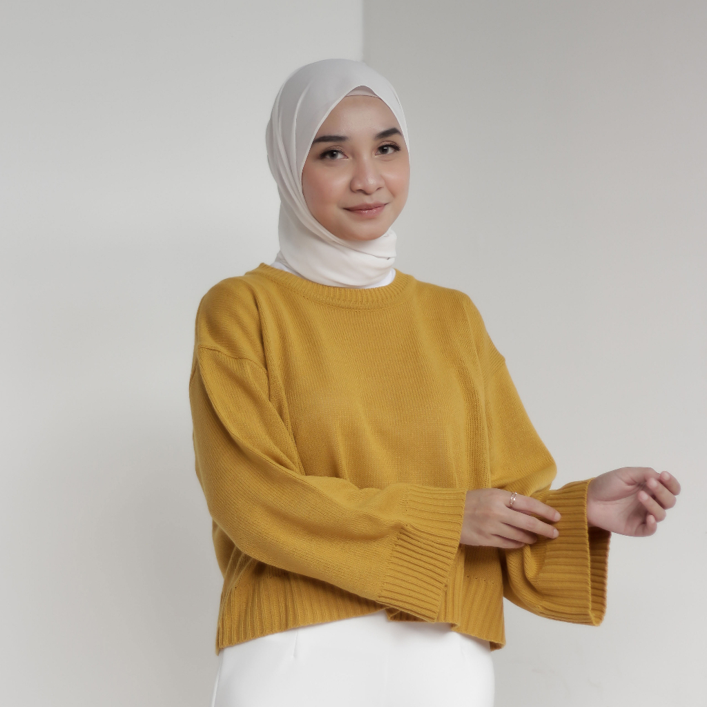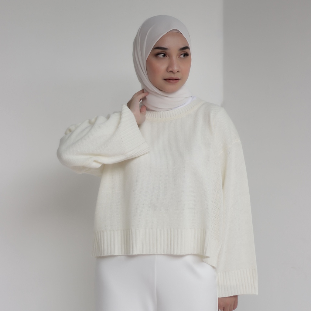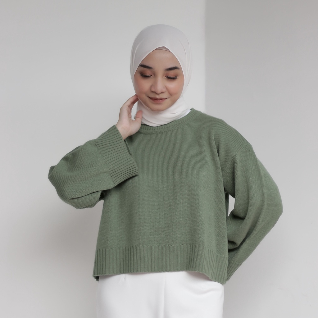 Ahlami- Noura Basic Crop Top Oversize Crop Top Rajut Sweatshirt Crop Oversize Panjang Lengan Sweater Oversize
