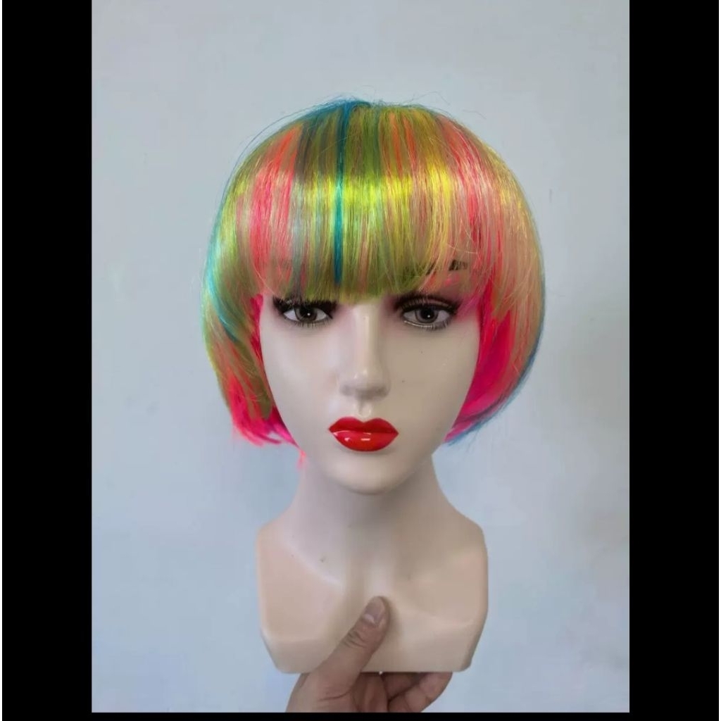 Wig Rambut Palsu Pendek Bop Bob Sebahu Sepundak Lurus Fake Hair Extension Cosplay Kosplay