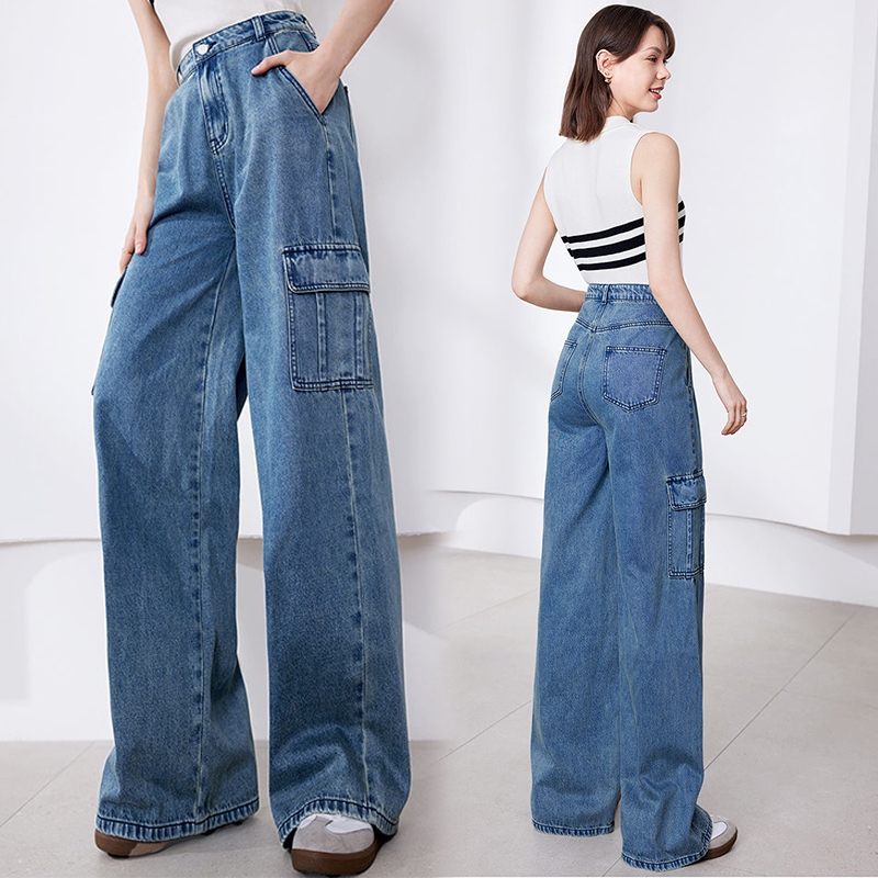 Keygirl Original Beberapa saku Cargo Jeans Wanita Highwaist Kekinian Highwaist Loose Big Size Jumbo 5XL New Jeans