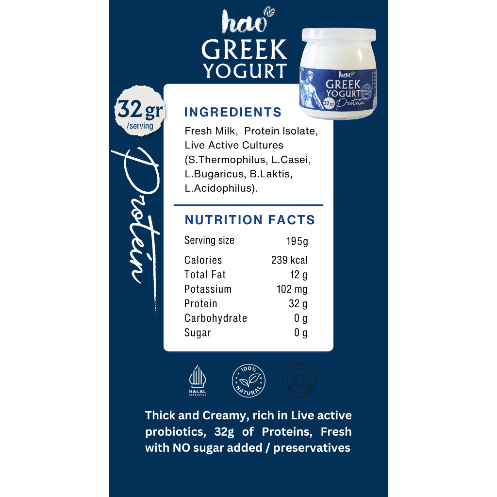 Hao Greek Yogurt PLAIN 32GR PROTEIN Live Active Probiotics Yoghurt