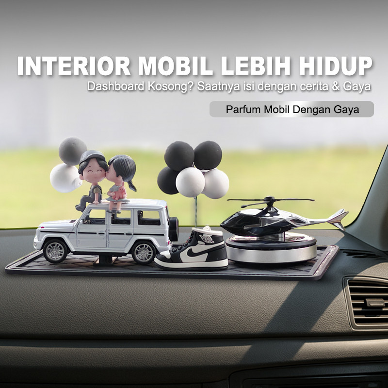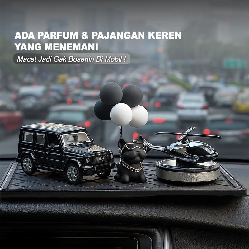 PAKET LENGKAP Dekorasi Dashboard Mobil Isi Lengkap– Mobil Jeep + Helikopter Parfum + Aksesoris Lucu