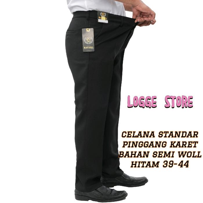 LOGGE STORE CELANA STANDAR PRIA VOXY PANJANG PINGGANG KARET BAHAN SEMI WOLL KAIN MELAR JUMBO 39-44 HITAM & ABU TUA KANTONG FORMAL CASUAL - HITAM, 39