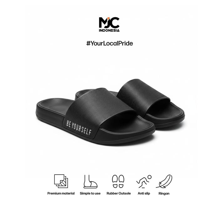 MJC INDONESIA SLOP PRIA DISTRO SELOP PRIA WANITA SENDAL SLIP ON FULL HITAM SANDAL SELOP ANTI SLIP SHOES 36-44 LUAR R KARET FLEKSIBEL ELEGAN SANDALS & FLIP FLOPS SANDAL COWOK - FULL HITAM, 36