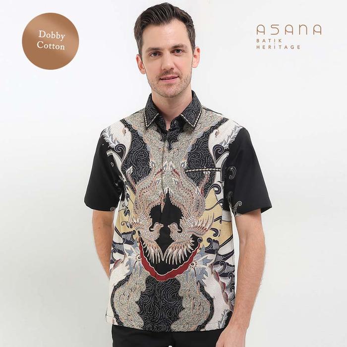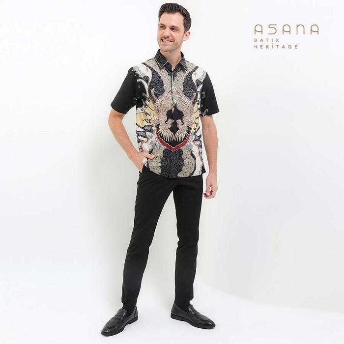 KEMEJA BORDIR ASANA BATIK LENGAN PENDEK PRADUTA - HITAM - M