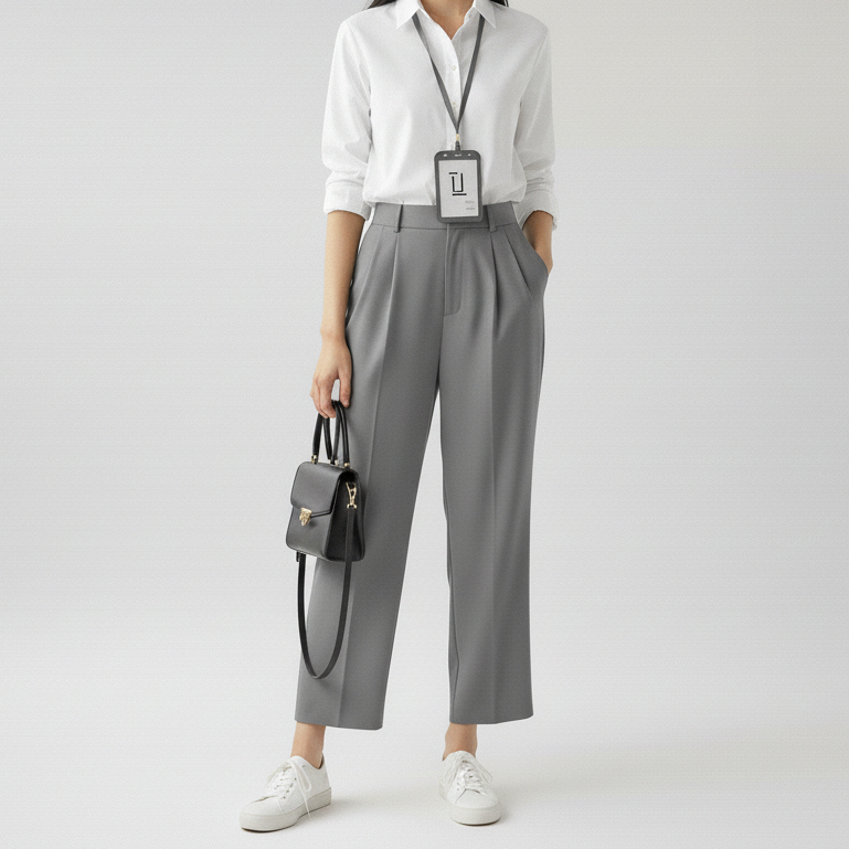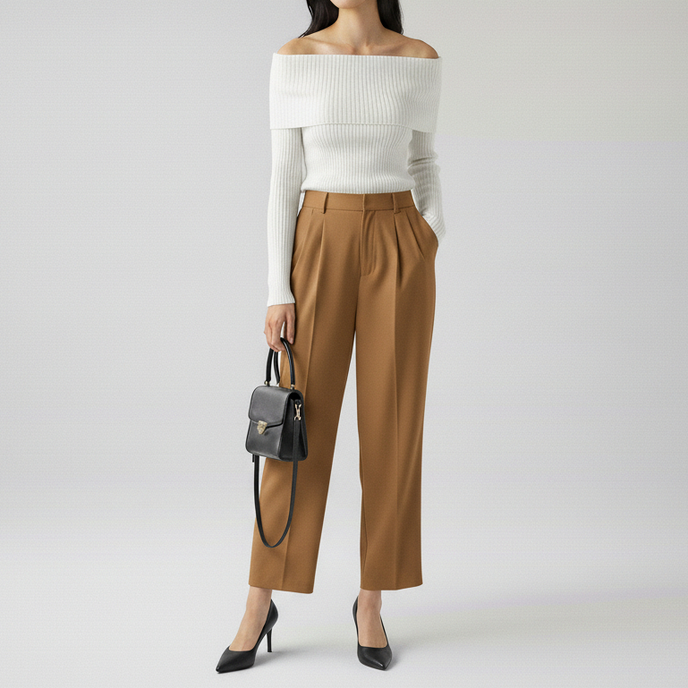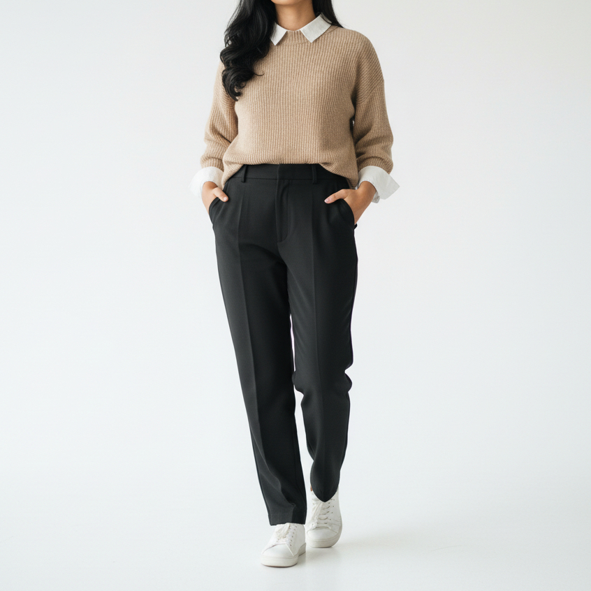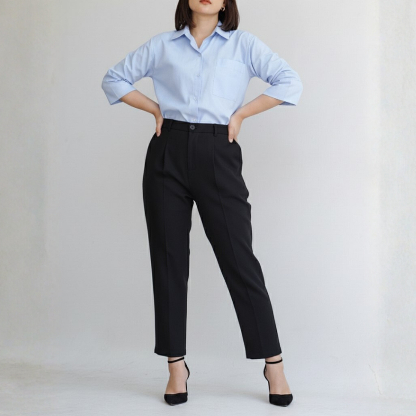 KLEOVA Jean Ankle Pants - Celana Panjang Wanita Highwaist Kerja Kantor - Straight Loose Pants