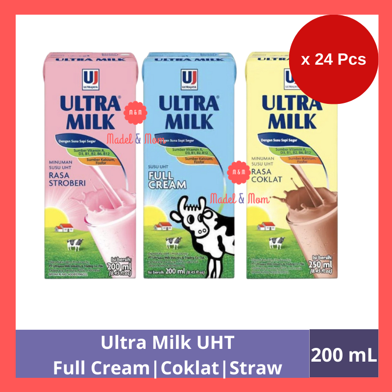 ULTRA MILK UHT 200 ML FULL CREAM / COKLAT /STRAWBERY BISA MIXED 1 DUS