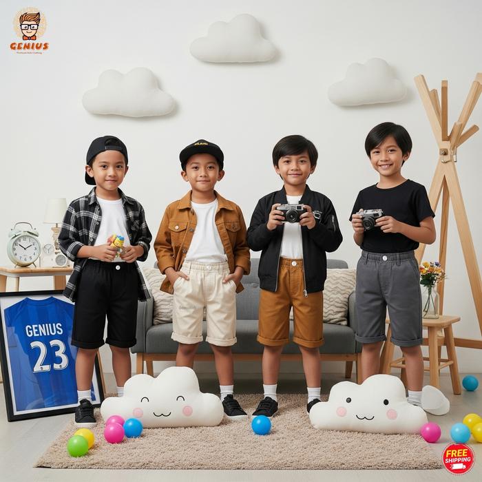 GENIUS KIDS - CELANA PENDEK ANAK LAKI-LAKI 1-8 TAHUN BAHAN CHINOS KATUN TWILL CELANA SANTAI ANAK COWOK PREMIUM NYAMAN ST