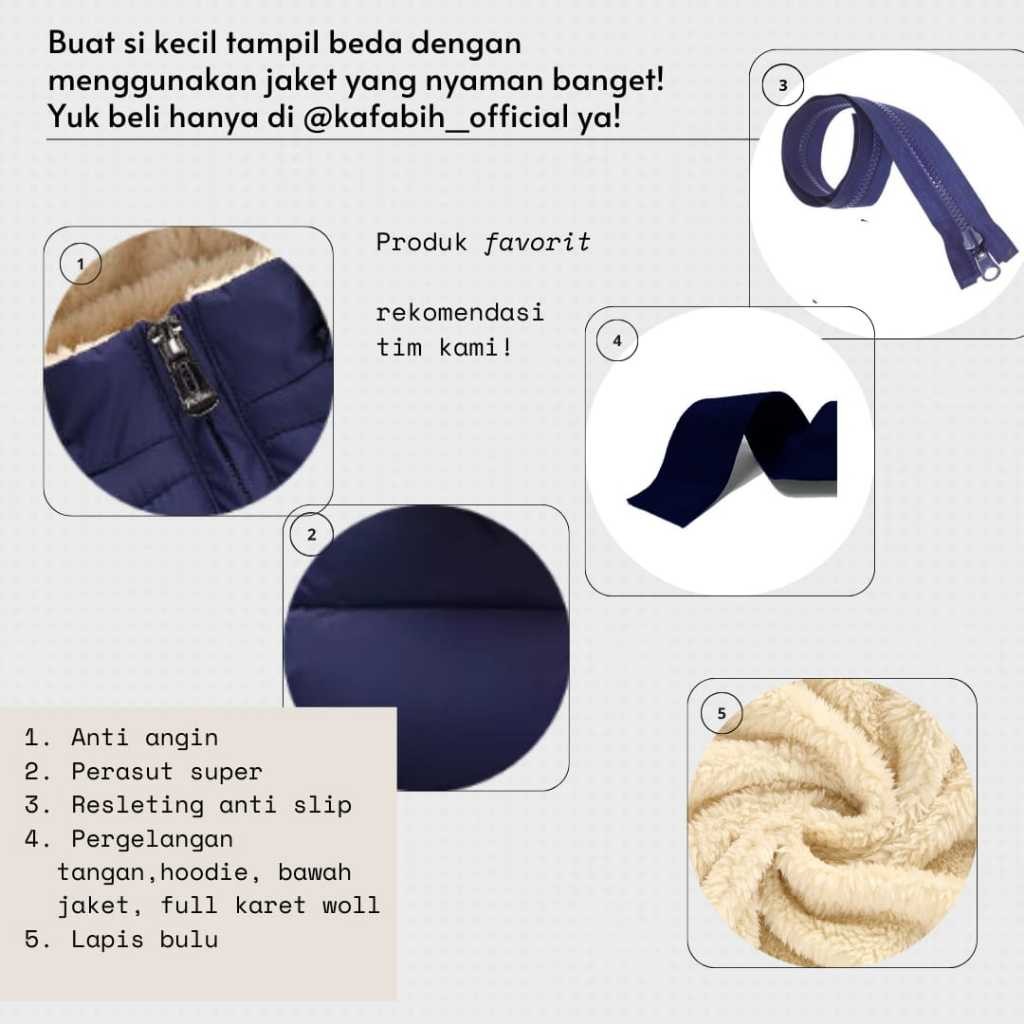 kafabih_official jaket anak laki laki perempuan puffer lapis bulu usia 1-12 tahun/Terbaru