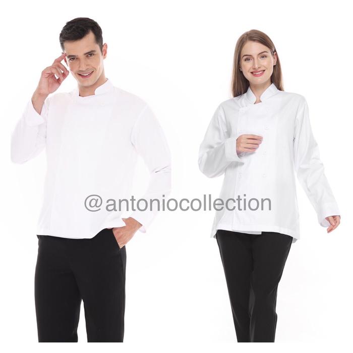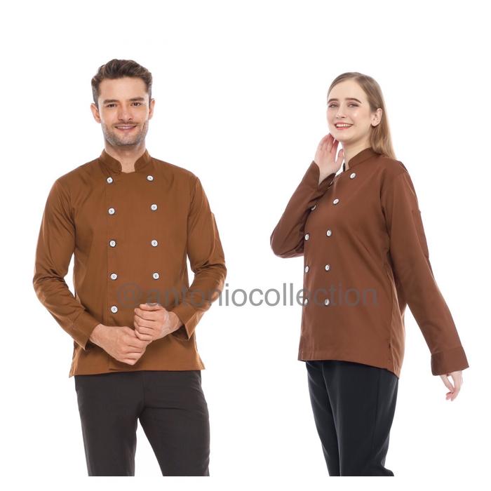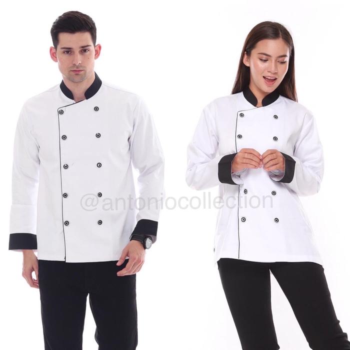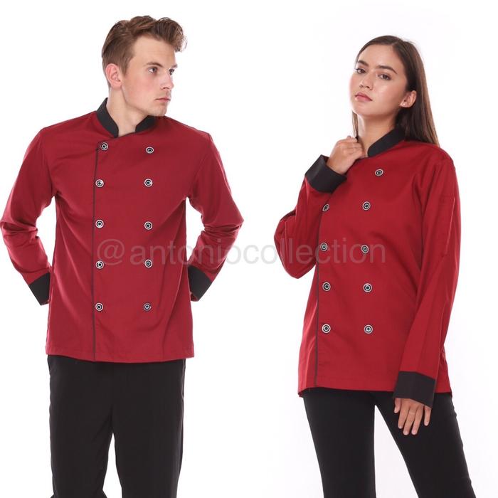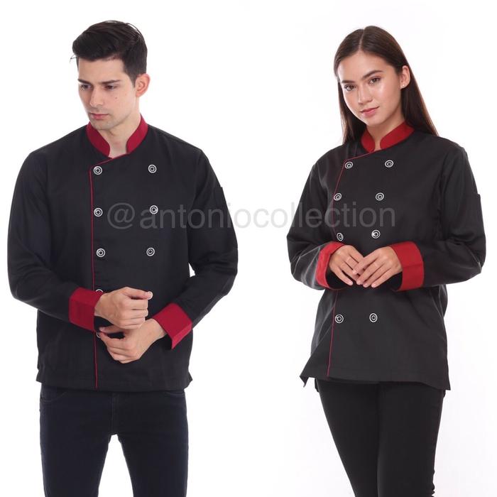 BAJU KOKI CHEF JACKET LENGAN PANJANG UNISEX - HITAM LIS MAROON, S