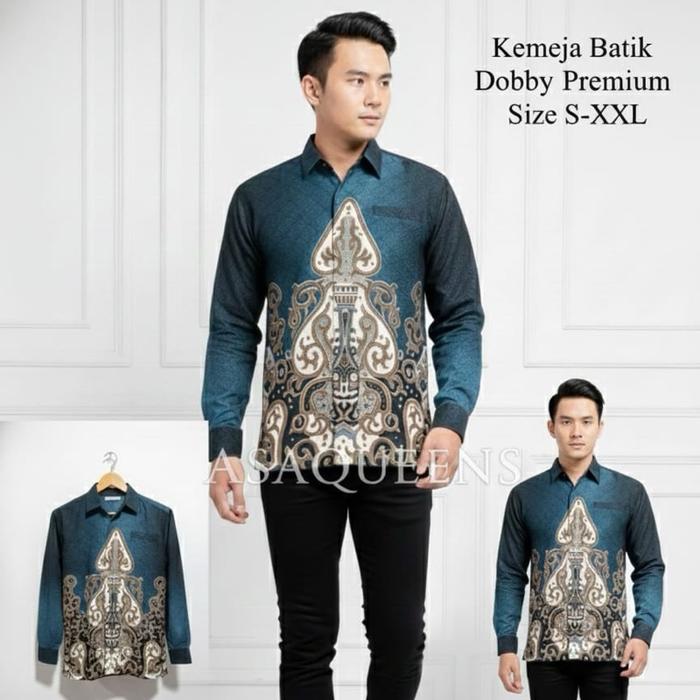 BATIK PRIA KEMEJA DOBBY PREMIUM | KEMEJA BATIK PRIA BAHAN DOBY | ATASAN BATIK LAKI LAKI | BAJU BATIK DOBBY | BAJU BATIK LENGAN PANJANG - KMJDOBBYFURINGBIRU, S