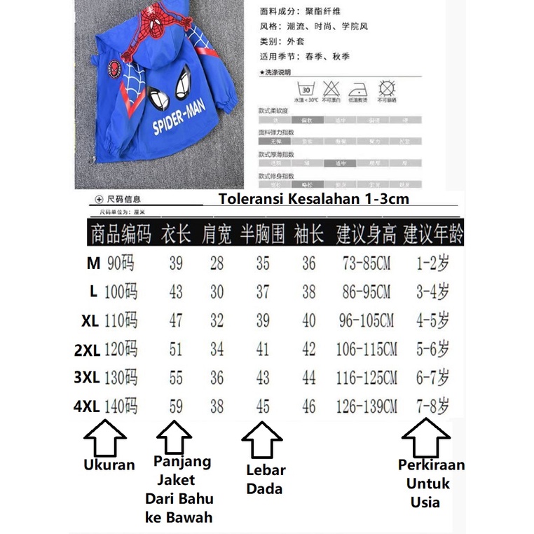 Jaket Import Anak Cowok motif Spiderman 0-10Tahun serbaguna bisa di gunakan pada musim dingin dan musim hujan