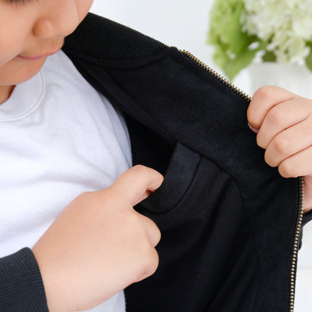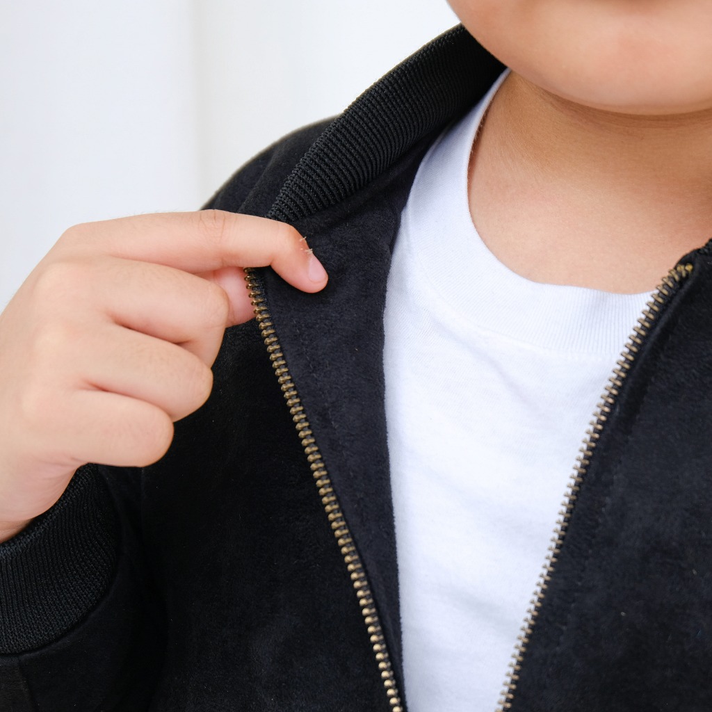Brofash Jaket Bomber Kulit Suede Anak Laki Laki Umur 2 3 4 5 6 7 8 9 10 11 12 13 14 Tahun Hitam