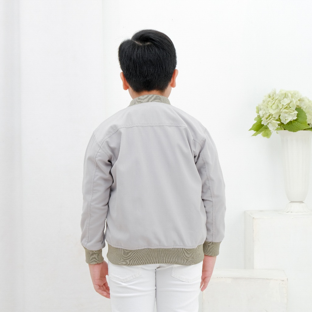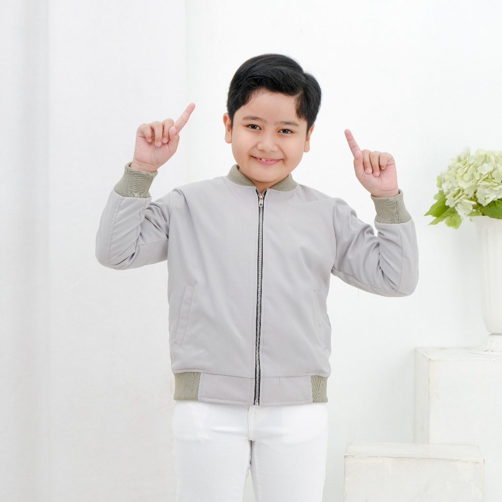 Brofash Jaket Bomber Canvas Anak laki Laki Cowok Umur 2 3 4 5 6 7 8 9 10 11 12 13 Tahun Warna Abu Muda Original Casual K