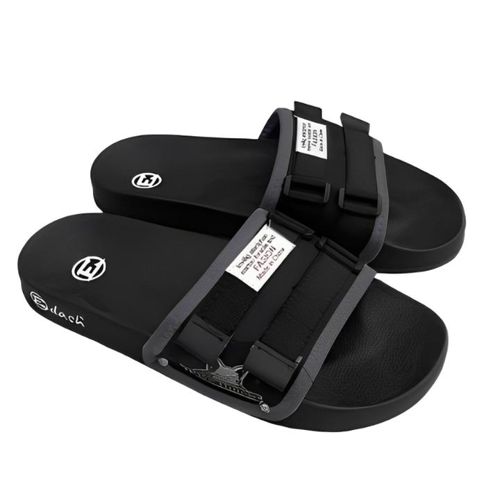 EDASH - SANDAL SLOP PRIA MOTIF FIVE TIME | SANDAL PRIA | SANDAL SLIDE | SENDAL DISTRO | SANDAL PRIA & WANITA SIZE 36 - 43 KARET PVC SELOP SHOES - HITAM, 36