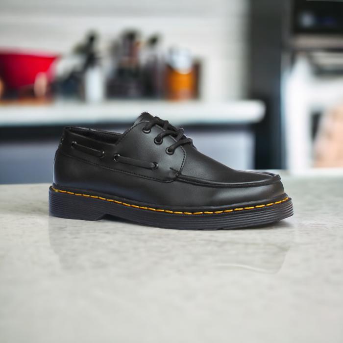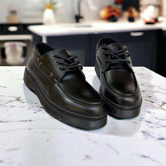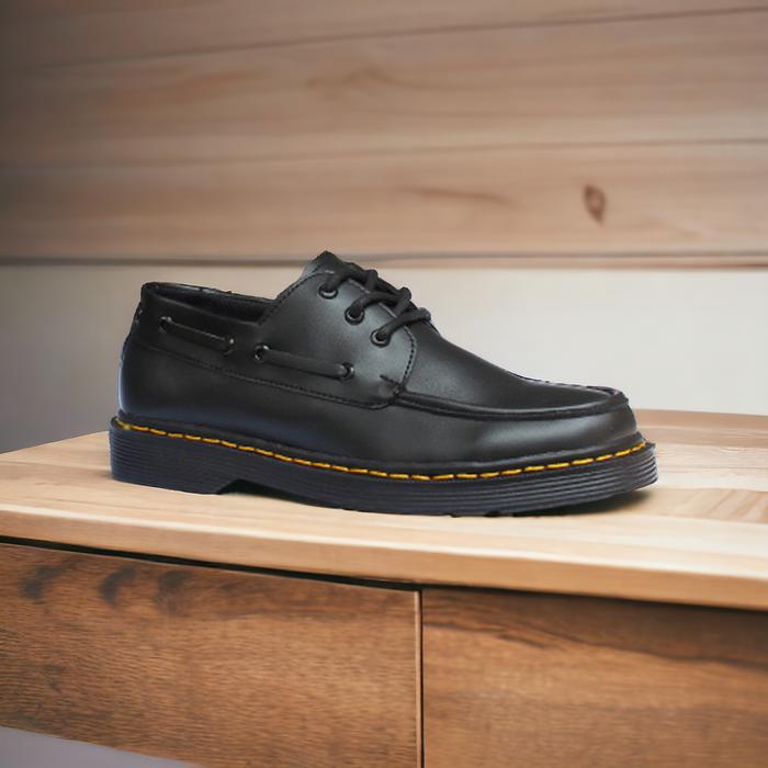 SEPATU DOCMART PRIA KASUAL FORMAL MARTEEN OXFORD ZAPATO KASUAL HITAM KERJA RESMI KANTOR KULIAH KONDANGAN LAKI LAKI COWOK KULIT SINTETIS ORIGINAL TERBARU SHOES SOL KARET PANTOFEL - JAHIT SOL KUNING, 38