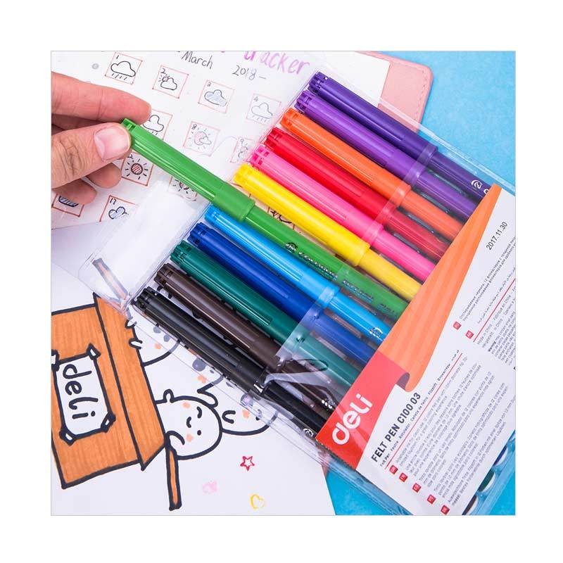 Deli EC10003 Spidol Warna - Felt Pen dapat dicuci 1.0mm 12 Warna