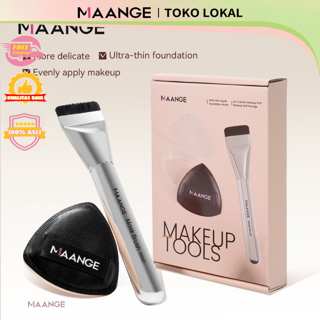 MAANGE 2 In 1 Kuas Make Up Brush Set Ultra Tipis Foundation Brush/ Lembut Makeup Sponge Dengan Kotak Hadiah Yang Indah