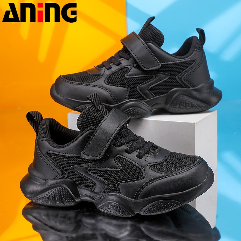 Sepatu Sekolah Anak Ukuran Sneakers Hitam Velcro Sepatu Anak 28 37 Full Hitam Aningaingboy