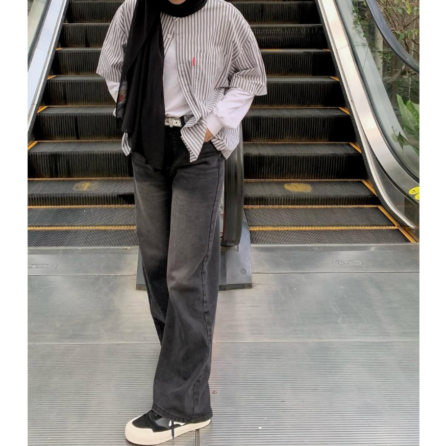 UNI Baggy Jeans Retro - Celana Jeans Wanita Oversize Gombrong Retro Loose Korean Style