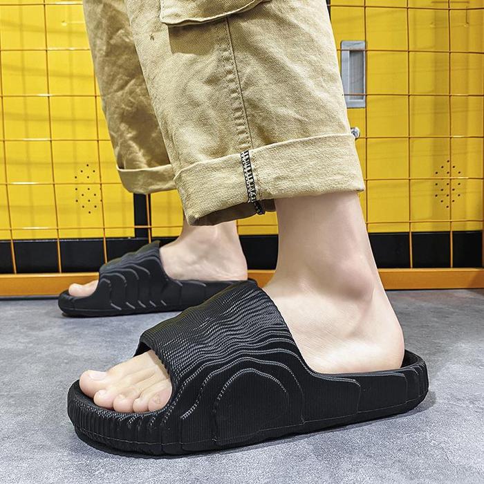 SANDAL PRIA SENDAL SELOP PRIA KEKINIAN BAHAN KARET EVA RUBBER ELASTIS EMPUK DAN RINGAN SENDAL SELOP BLACK SHOES - BLACK, 39 - 40