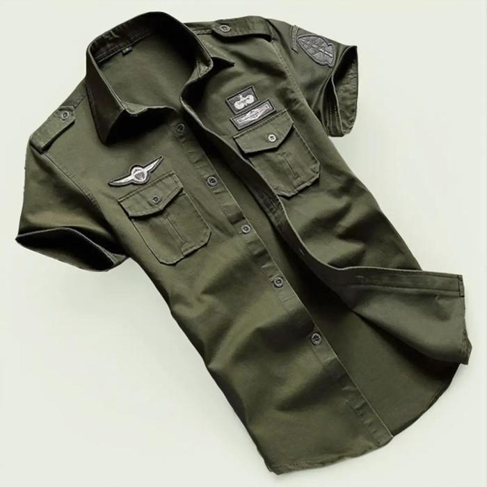 KEMEJA OUTDOOR INDOOR PRIAKEMEJA LAPANGAN PRIAKEMEJA LENGAN PENDEKKEMEJA FORMALKEMEJA TAKTICALKEMEJA PRIA LENGAN BAJU KATUN PANJANG BASIC - HIJAU ARMY, M