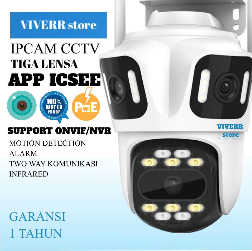 ICSEE Kamera cctv wifi ipcam ptz ip 12MP 1080P tiga lensa tiga layar sensor gerak komunikasi duaarah pantau jarak jauh