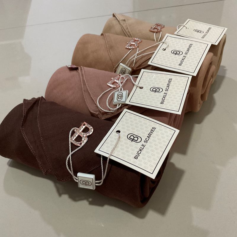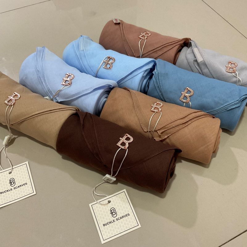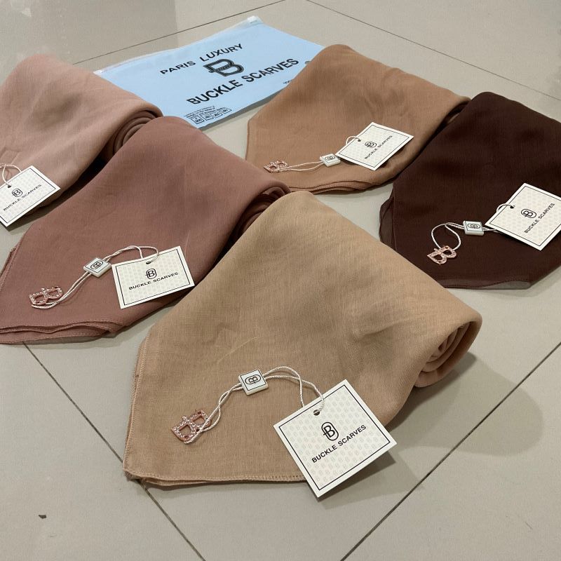 Kerudung Segi Empat Paris Buckle Scarves Hijab Voal Polos Pouch Jilbab Premium Terbaru