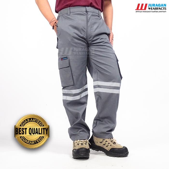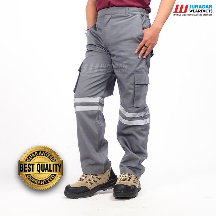 CELANA PANJANG KERJA WEARPACK SAFETY WARNA ABU TUA PRIA WANITA BAWAHAN SETELAN KATUN - S