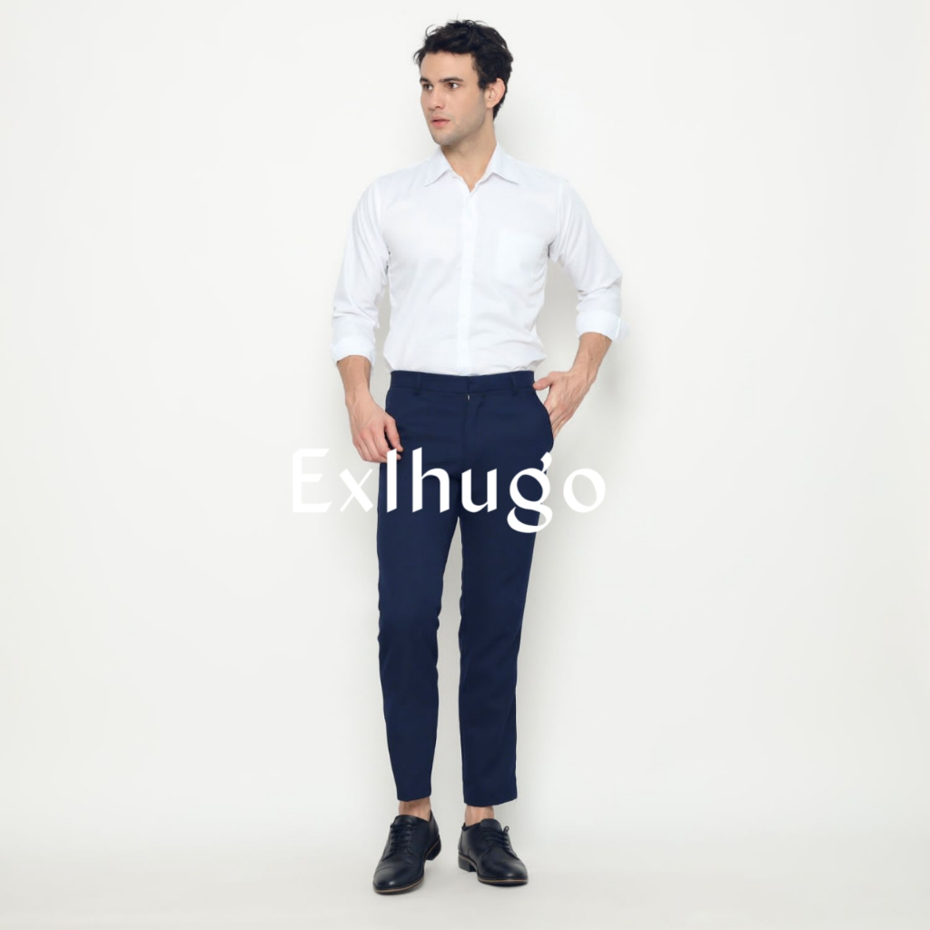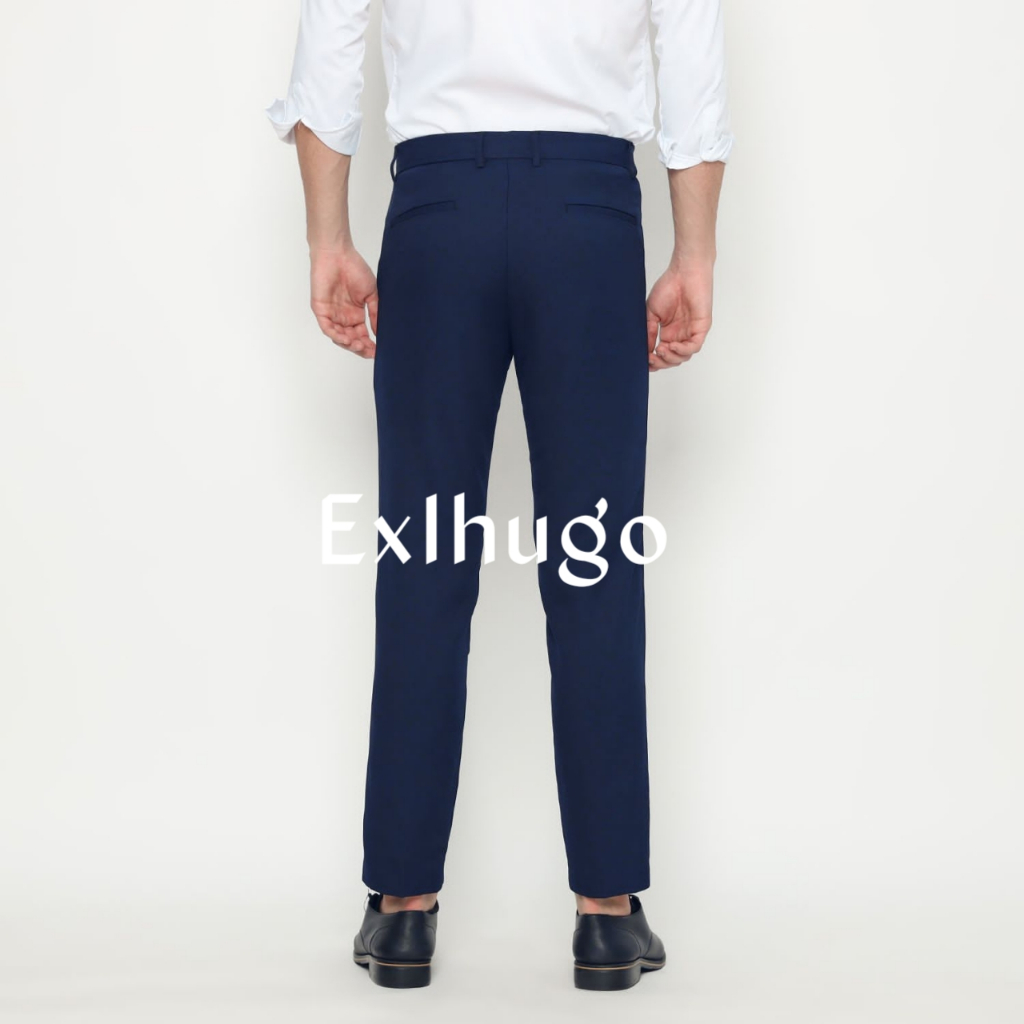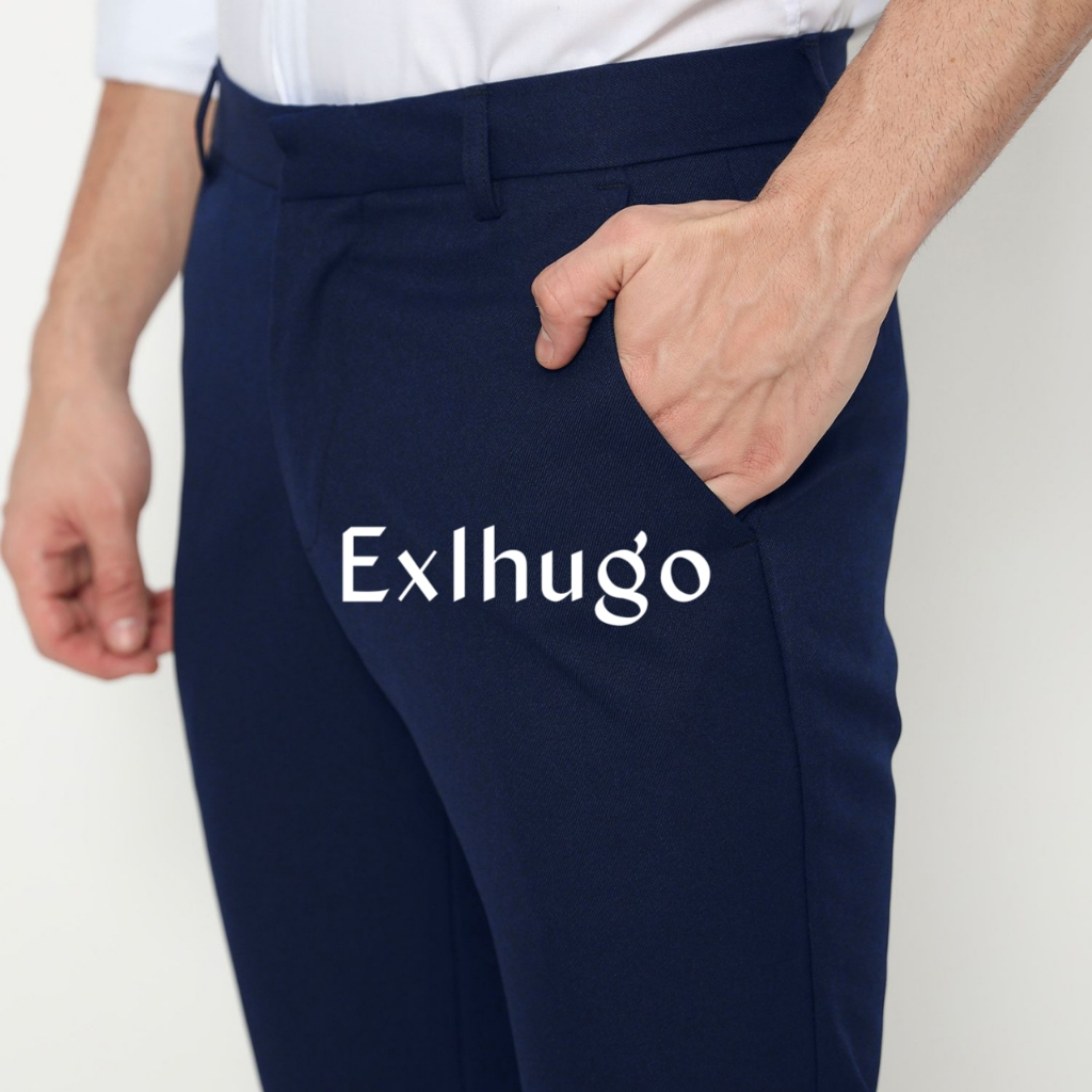 EXLHUGO - Dark blue trousers | biru dongker | celana bahan pria