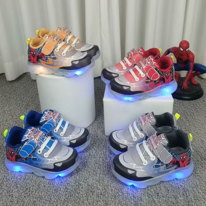 SEPATU SNEAKERS ANAK LED BISA NYALA GAMBAR KARAKTER SPIDERMAN UKURAN 24 - 27