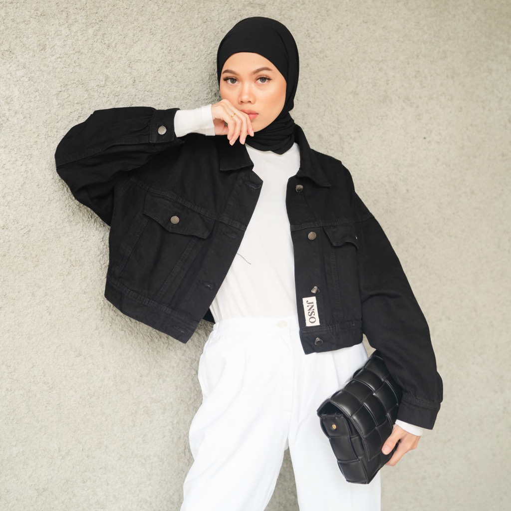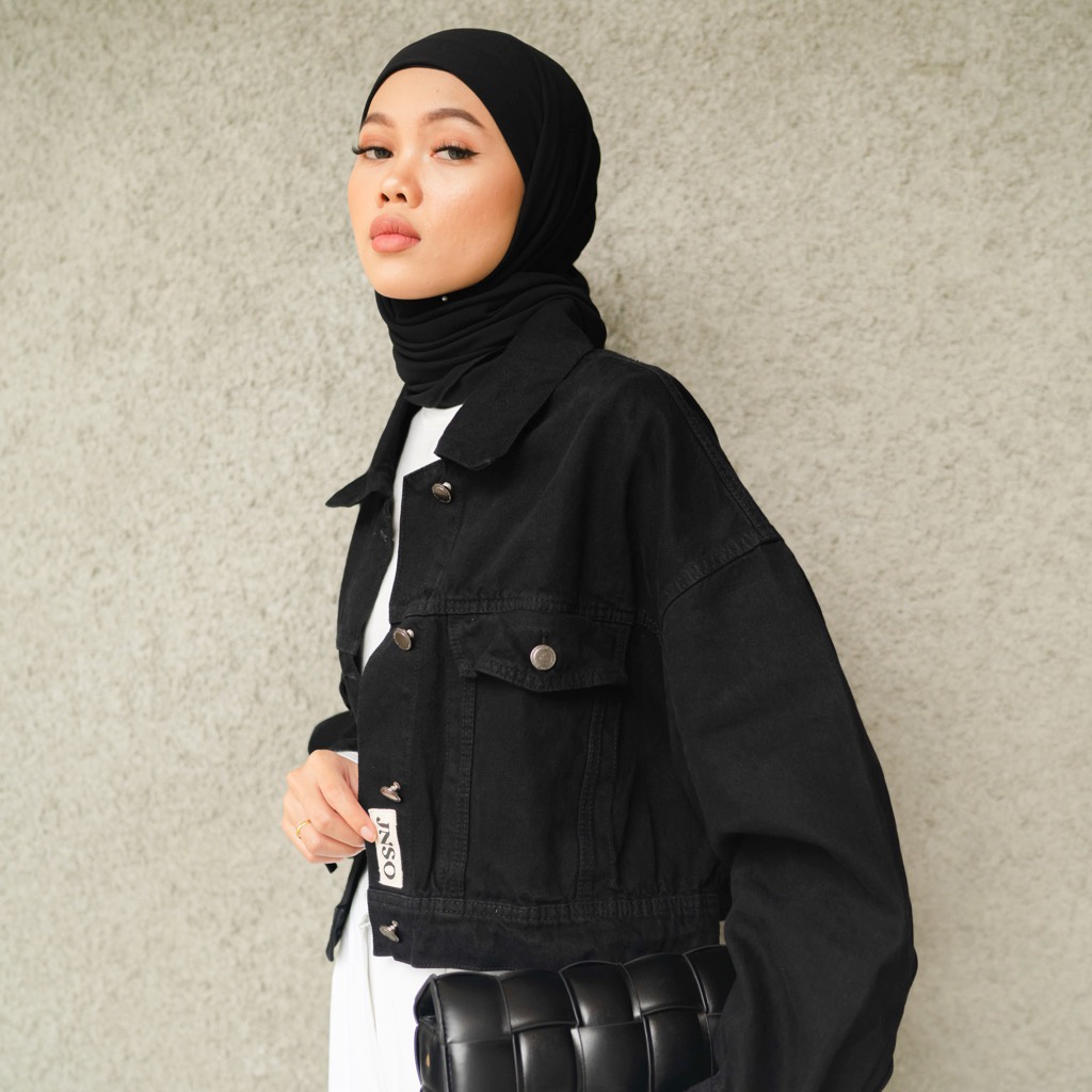 FLASH SALE Jaket Crop Jeans Oversize Urban Black