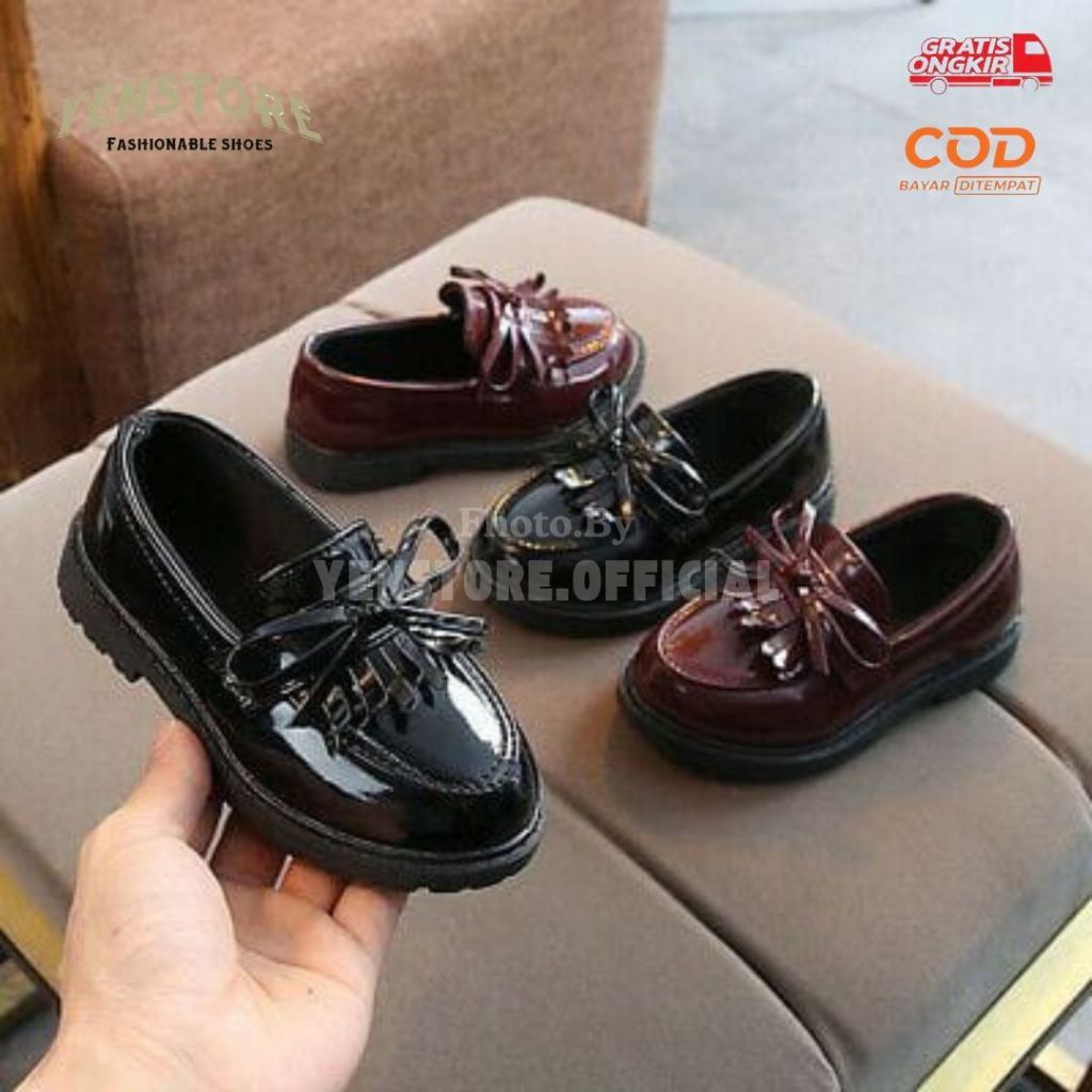 Sepatu Docmart Anak Sepatu Loafers Anak Variasi Pita Lucu Korean Style Terbaru